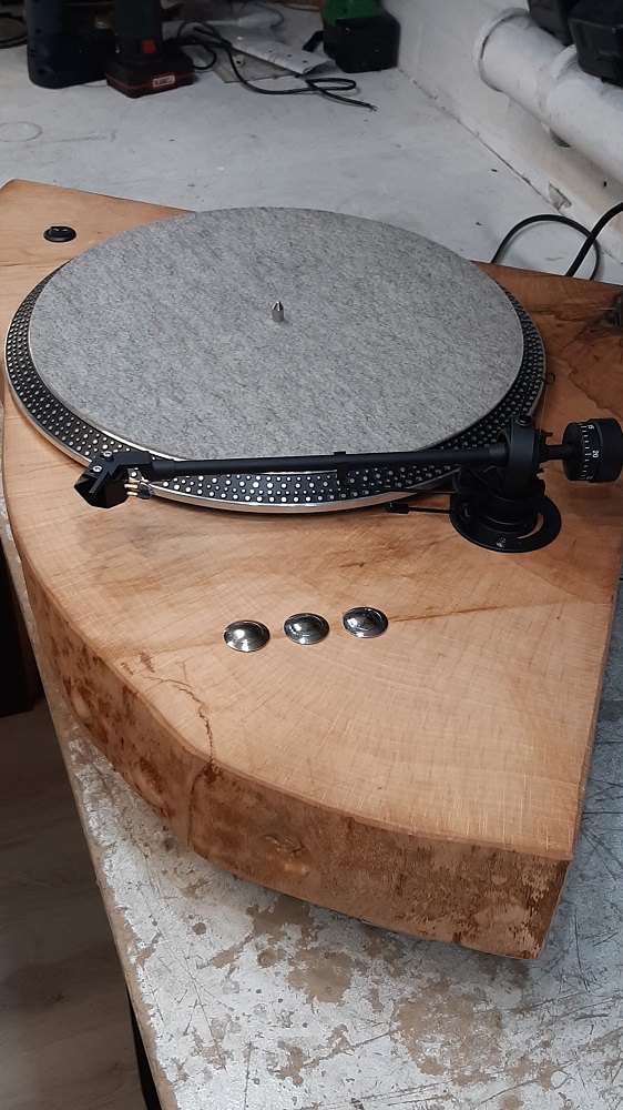 Elm tree deck Previous Turntables Year: Tags: Next Deck created by using recycled part from two turntables.Thorens tone arm and cabling, Oem Direct drive unit. Piece of Elm was from a tree in my parents street